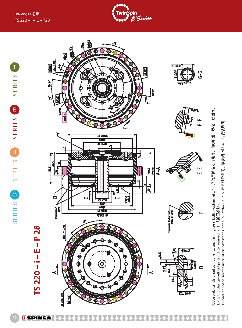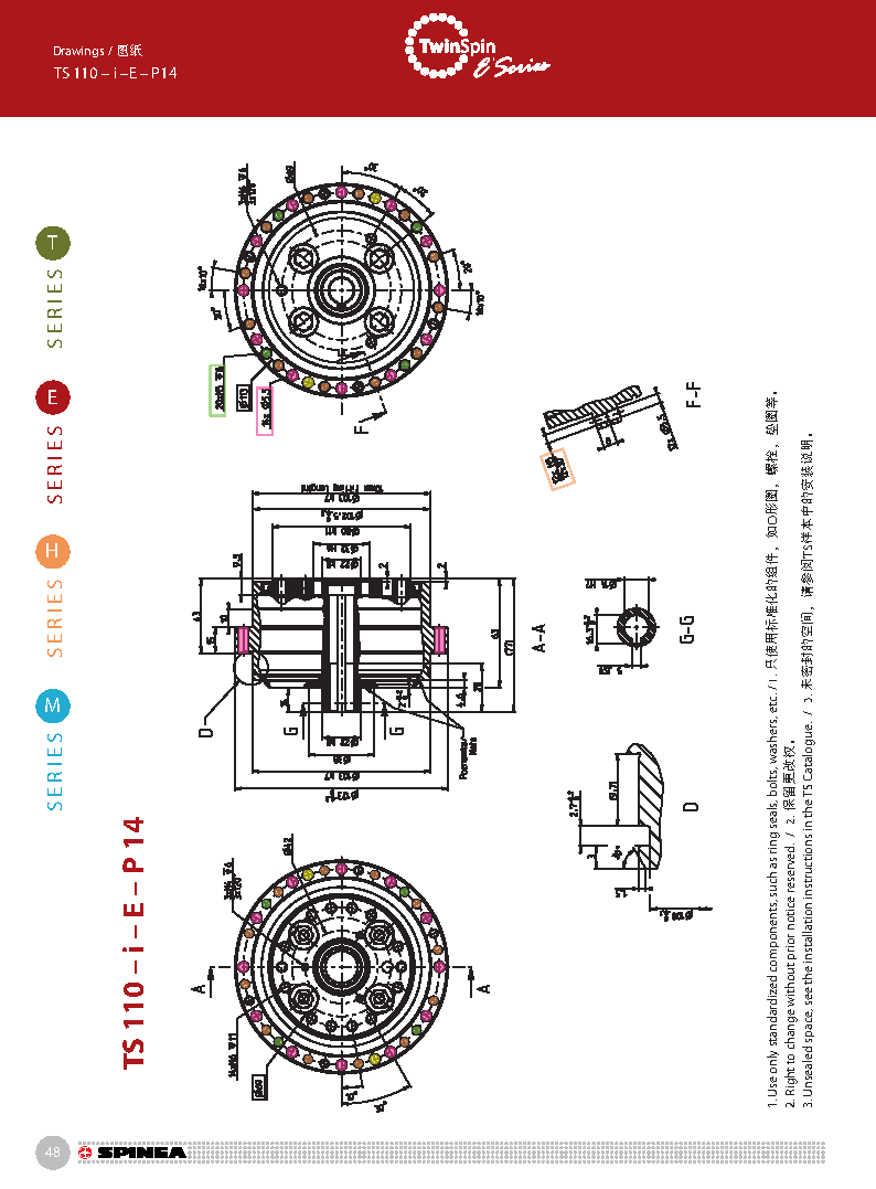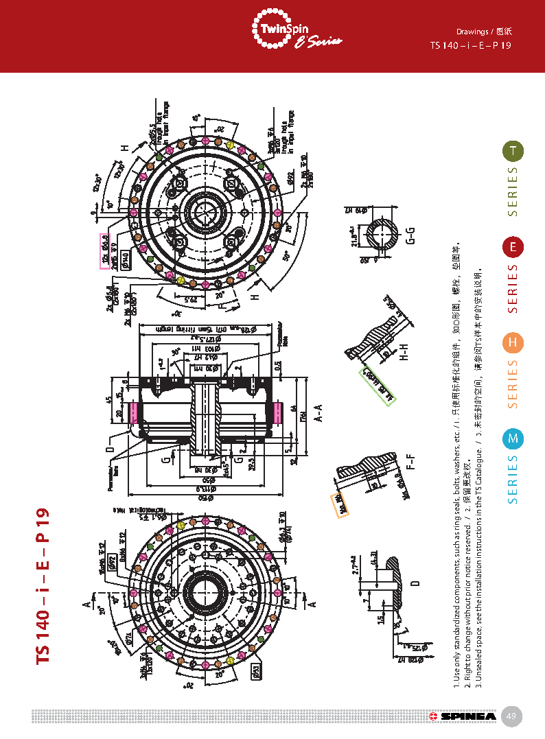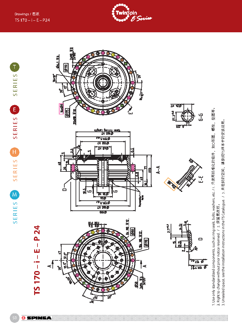 E 系列是帶有法蘭形殼體的Twinspin高精度減速機。 該系列內(nèi)部包含精密減速機構(gòu)和高強度交叉滾子軸承,又 名“軸承式減速機”。這種設(shè)計可以把負載直接安裝在減 速機輸出法蘭上,省去輸出端的額外軸承。 T系列采用模塊化設(shè)計,允許用戶通過電機法蘭的方式連 接各種電機。 標準的T系列減速機為半密封狀態(tài);需要用輸入法蘭和墊 圈密封。SPINEA可根據(jù)客戶電機結(jié)構(gòu)提供全密封帶輸入 法蘭的減速機。