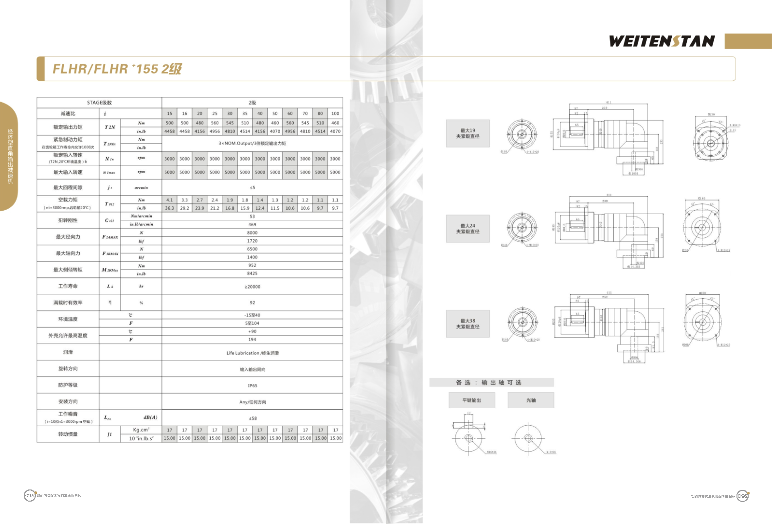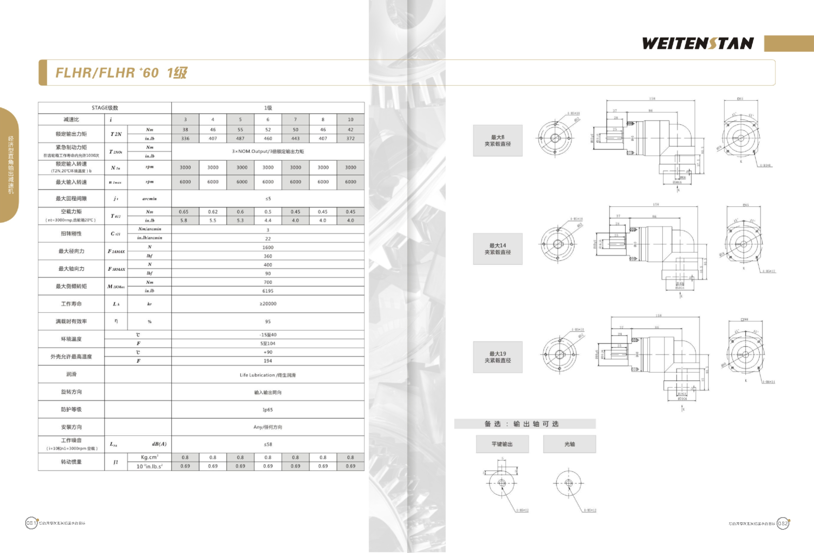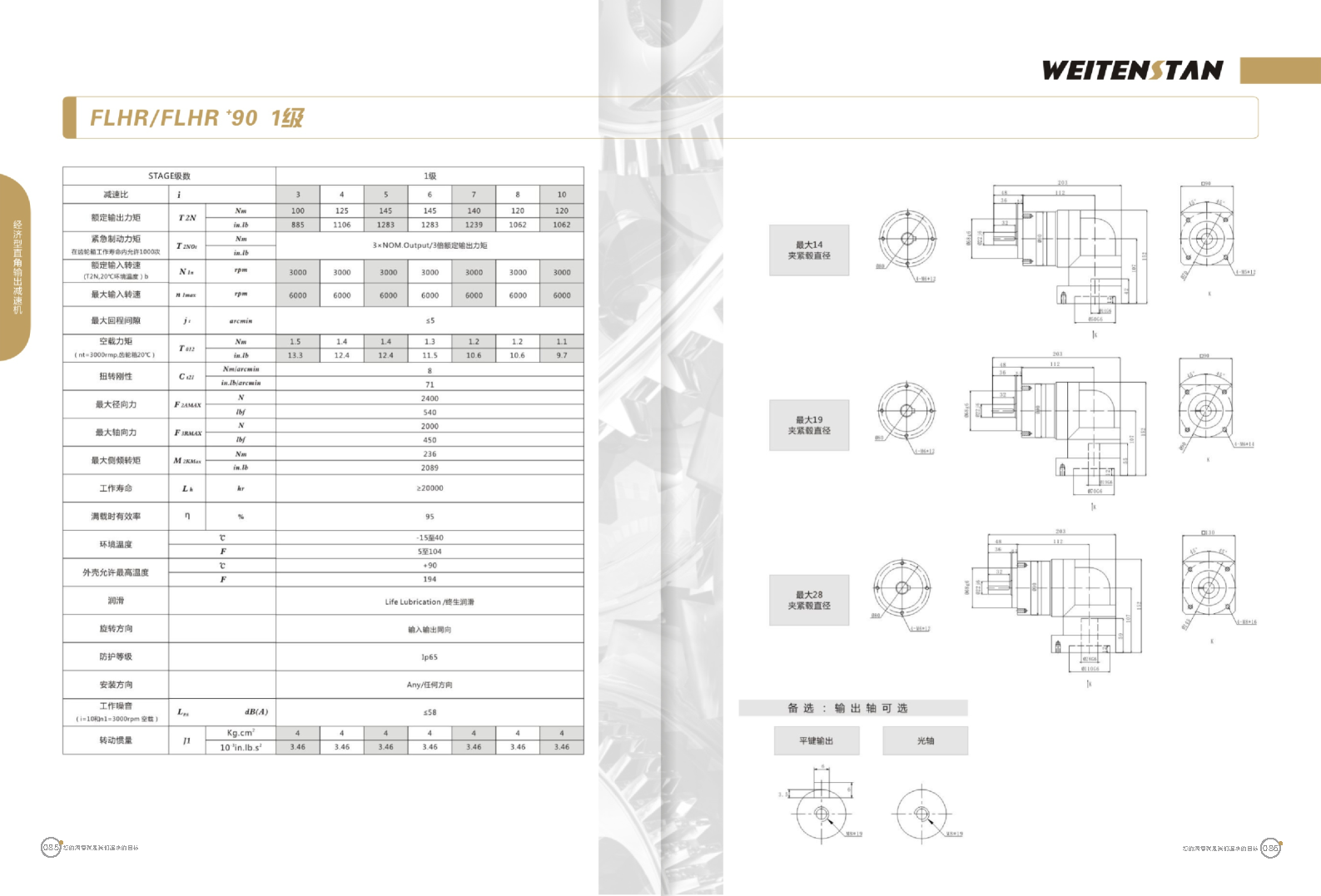 FLHR系列經(jīng)濟型直角輸出減速機。 FLHR產(chǎn)品系列的經(jīng)濟型轉(zhuǎn)角式減速機。 極高的功率密度。盡管以往系列性能極為出色,但我們成功的將扭矩提高了近40%。不斷提高極限值,典型威騰斯坦產(chǎn)品! 電機安裝簡易。電機可安全簡易的一步安裝,另外您也可以選擇威騰斯坦享有的專利權(quán)的,帶有長度補償軸的安裝。 任意位置安裝。不管你在哪個位置安裝,你的齒輪箱始終有相同的潤滑油/潤滑脂量。安裝靈活、齒輪箱能夠垂直、水平、與從動軸一起向上或向下安裝。 極高的定位精度。根據(jù)用戶需求,你可獲得回程間隙小于角分的高型行星齒輪箱。這也大大提高了你應(yīng)用上的定位精度。 通過齒輪嚙合,運轉(zhuǎn)平穩(wěn)。相比直齒嚙合齒輪箱,本公司的斜齒嚙合齒輪箱運轉(zhuǎn)噪音減低了50dB-A,你深知50dB-A所創(chuàng)造的價值遠(yuǎn)遠(yuǎn)高于70dB-A。此外還有:不再感動振動,運轉(zhuǎn)平穩(wěn)到令人驚訝。 世界水平的預(yù)期壽命。原材料進(jìn)行了優(yōu)化,幾何形狀同樣進(jìn)行了優(yōu)化。