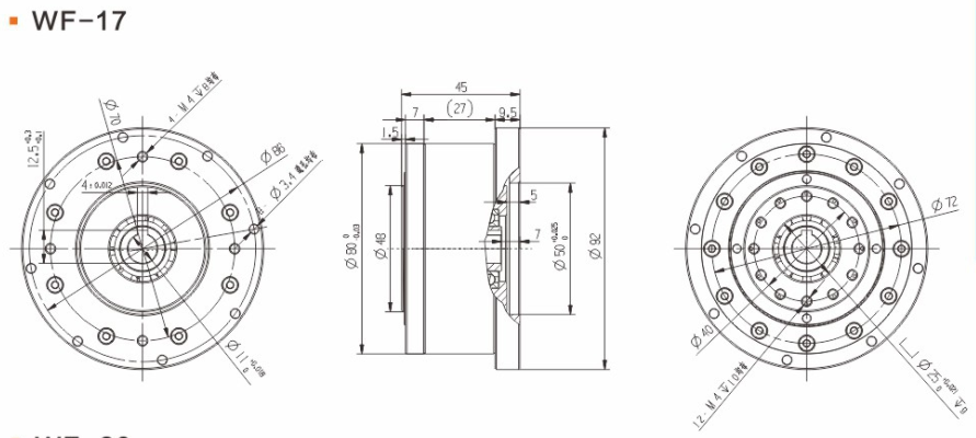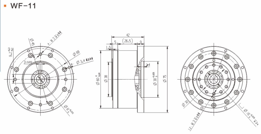 具有傳動(dòng)效率高、工作平穩(wěn)、噪聲低、結(jié)構(gòu)緊湊、重量輕、體積小、使用可靠、壽命長(zhǎng)、減速比范圍大等優(yōu)點(diǎn)。 輕量流線型設(shè)計(jì)、鋼質(zhì)本體、機(jī)型輕薄短小、體積比傳統(tǒng)行星式減速器大幅縮小、可節(jié)省安裝空間。 真圓齒形、齒腹大、抗壓性強(qiáng)、不干涉不崩齒、可承受頻繁正逆轉(zhuǎn)和瞬間急停慣性沖擊。 雙排結(jié)構(gòu)、負(fù)載分散、機(jī)理平衡、圓形齒輪設(shè)計(jì)、磨損小、噪音和溫升要比其他減速器低。 線接觸傳動(dòng)、摩擦系數(shù)小、效率高、出力扭矩大、慣量低、是一種精密的剛性傳動(dòng),剛性傳動(dòng)軌跡也最接近理想工作曲線,這和部分原件使用滾動(dòng)件的擺線式或和諧式傳動(dòng)設(shè)計(jì)有些許不同。 由于雙共軛工作曲線和撓性軸銷(xiāo)輸出裝置的改良設(shè)計(jì)、本機(jī)高精度背隙可控制在弧秒范圍。 長(zhǎng)效性油脂潤(rùn)滑、不需要保養(yǎng)、安裝方向不受限。 人力方式有筒夾緊式和鍵槽式供選用。