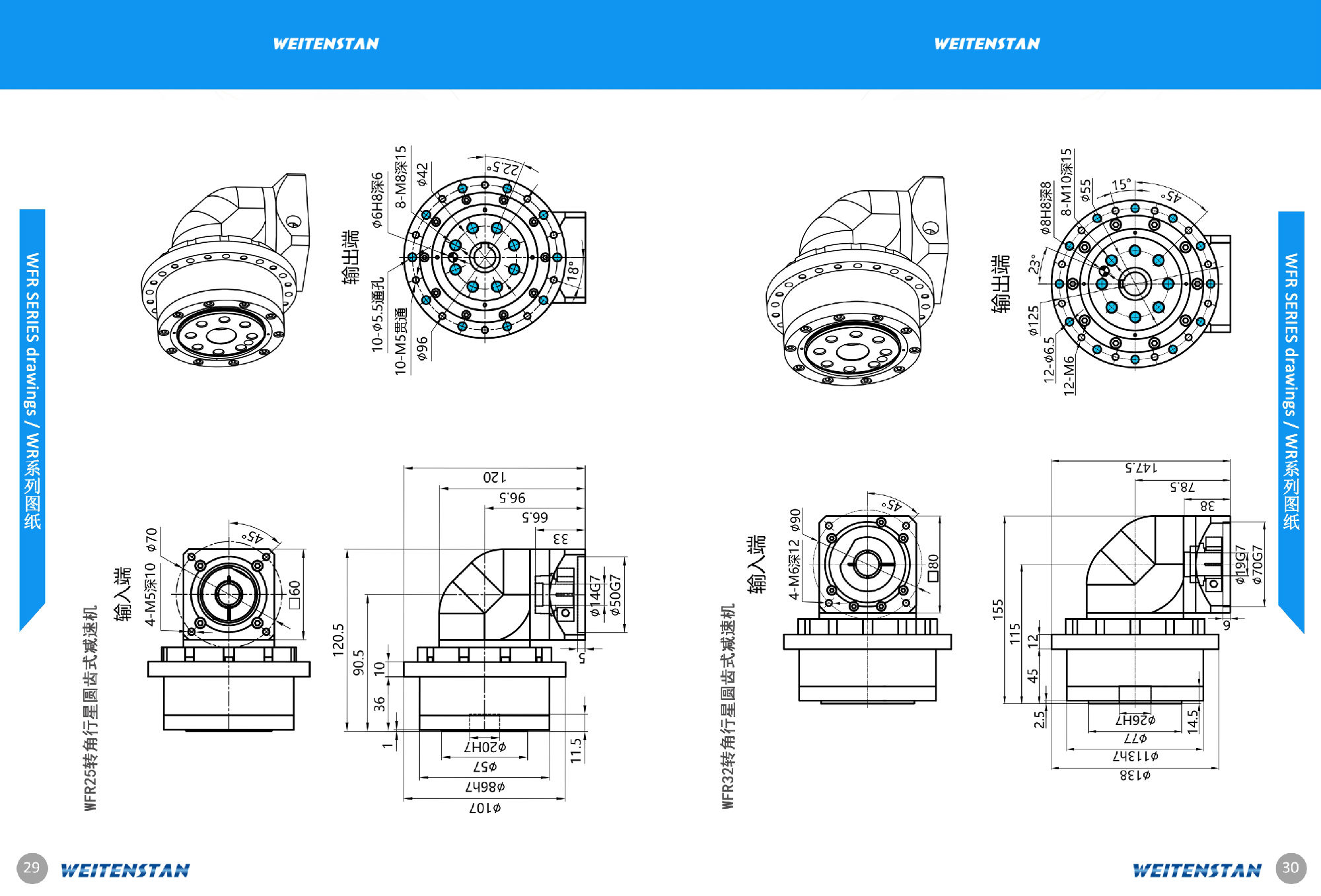 WFR系列時帶法蘭的高精度減速機(jī),其特點時輸入和輸出的角度為90°,可大大節(jié)省安裝空間、模塊化設(shè)計可以通過法蘭安裝電機(jī)和減速機(jī)。